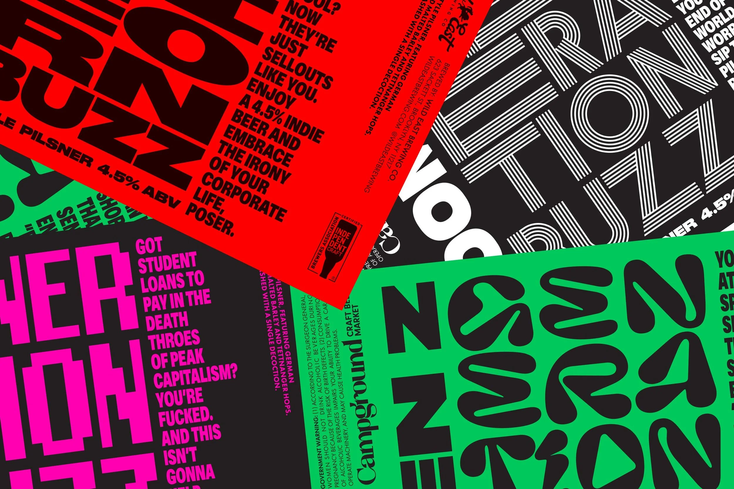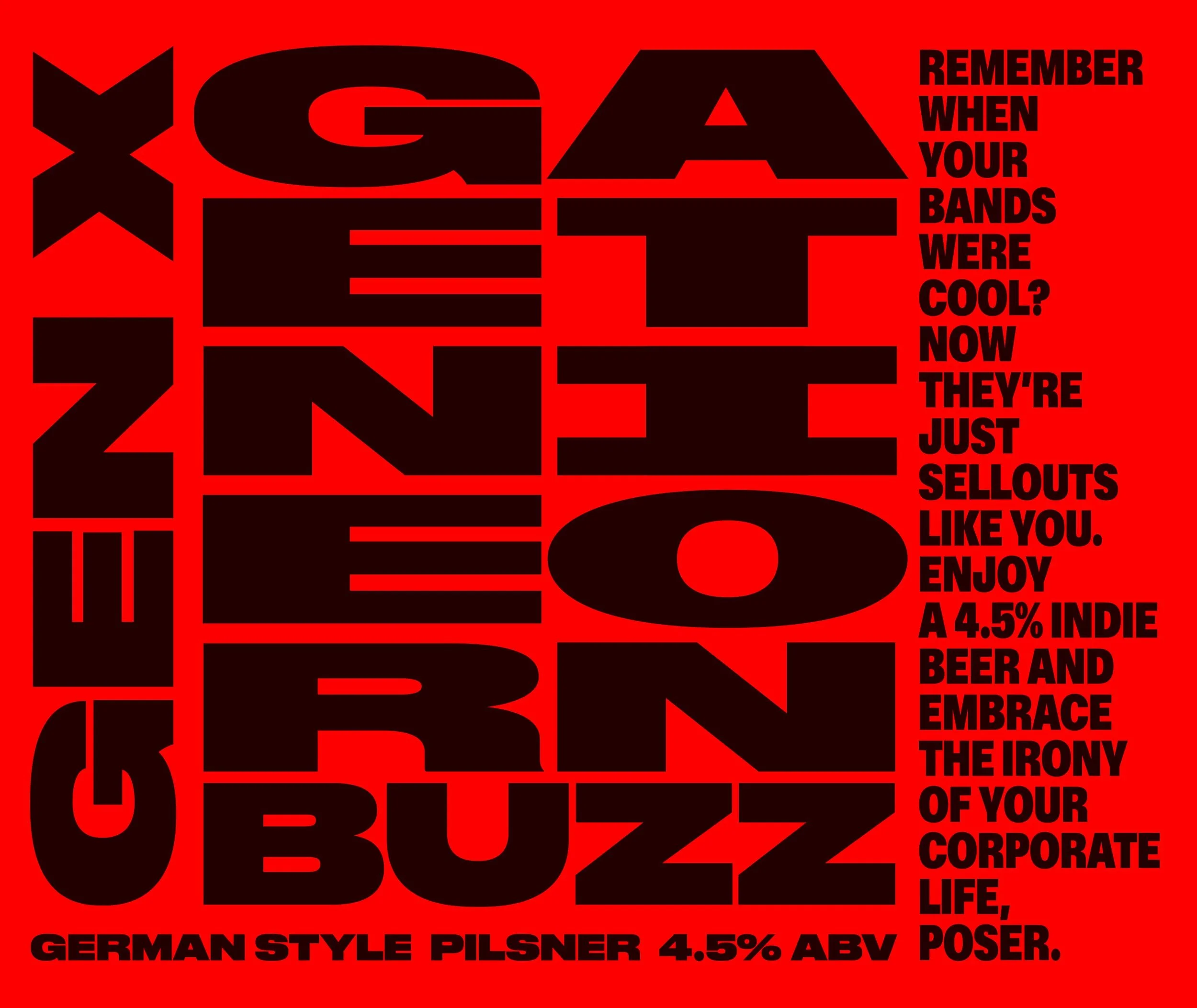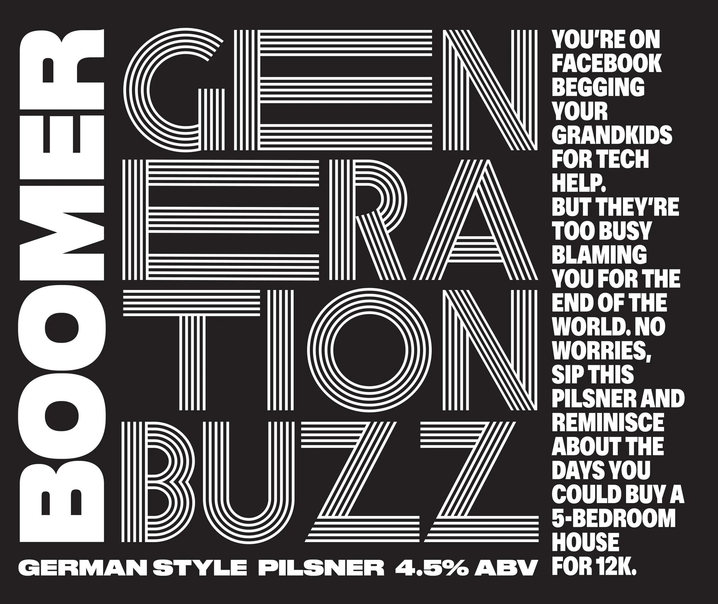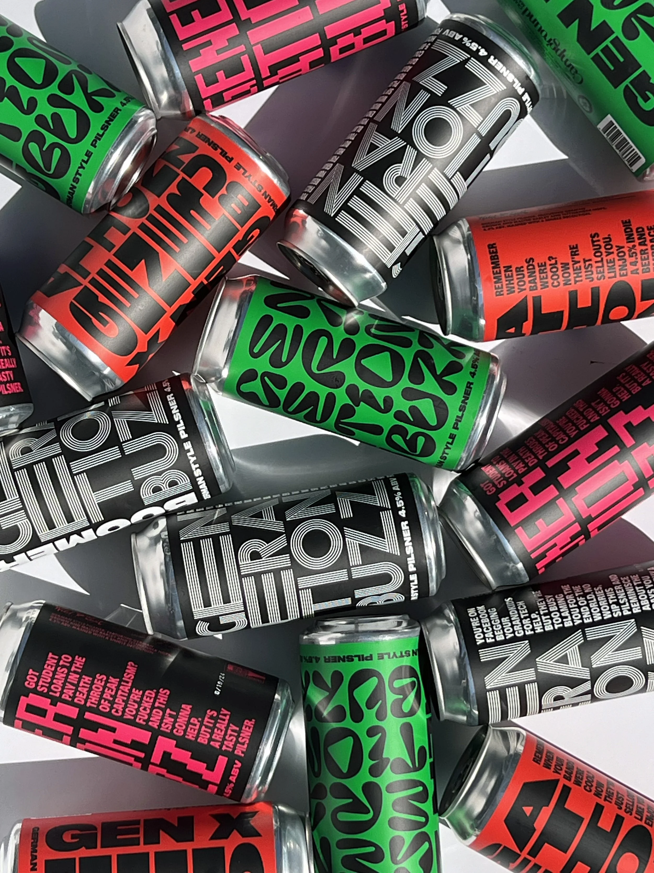 At McCann New York, we designed a four-pack of beer, each representing a different generation—Boomers, Gen X, Millennials, and Gen Z. The packaging uses typography and color to reflect each era, with fonts chosen to capture the spirit of their time.